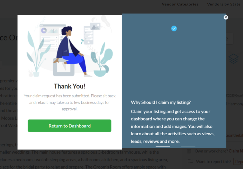 Targeting a business listing, clinck on the “CLAIM NOW’ button